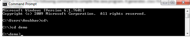 設(shè)置保存.java 文件的目錄。在我們的例子中,.java 文件保存在 C:\\demo 中。