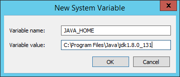 6.在變量值框中,輸入根jdk安裝目錄的路徑。如果您將 Java 安裝在默認(rèn)位置,則應(yīng)輸入的路徑為C:\Program Files\Java\jdk. 例如,Java 8 的默認(rèn)路徑是C:\Program Files\Java\jdk1.8.0_131