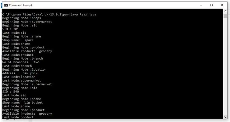 上面的代碼實(shí)現(xiàn)了一個(gè) SAX 解析器,它從 Flipkart 購(gòu)物文件中獲取一個(gè)新實(shí)例。它逐個(gè)節(jié)點(diǎn)解析。