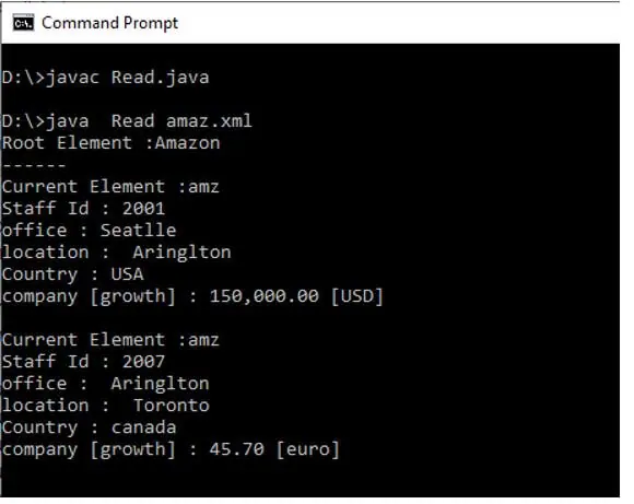 接下來(lái),將創(chuàng)建 DocumentBuilder 對(duì)象。將 XML 文件帶到文檔對(duì)象中。最后,解析 XML 文件并將其保存在文檔類(lèi)中。
