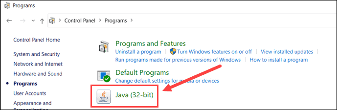 要在不打開終端窗口的情況下在 Windows 上查找 Java 版本,請(qǐng)使用控制面板。