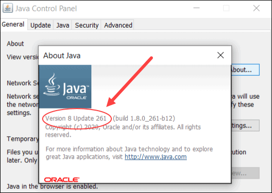 6.關(guān)于 Java窗口應(yīng)出現(xiàn)并顯示您計(jì)算機(jī)上的 Java 版本。