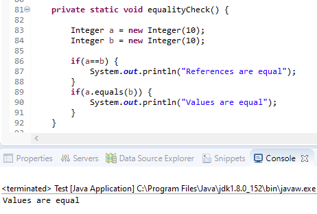 “==”和“equals()”之間存在巨大差異。這兩者在任何情況下都不能相互替代。“==”用于檢查兩個對象的引用,而“equals()”用于檢查java中這兩個對象內(nèi)部的值。看看下面的例子:
