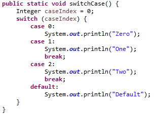 如果你在代碼示例中忘記了 case 0 中的 break,程序?qū)?ldquo;Zero”后跟“One”,因為這里的控制流將遍歷整個 switch 語句,直到遇到 break。因此,在編寫 switch case 時再次檢查。