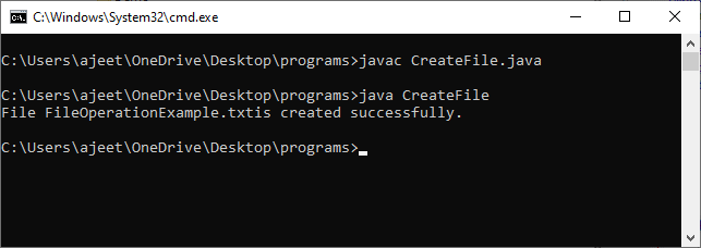 在上面的代碼中,我們分別導(dǎo)入了 File 和 IOException 類來執(zhí)行文件操作和處理錯誤。我們創(chuàng)建 File 類的f0對象并指定我們要創(chuàng)建文件的目錄的位置。在 try 塊中,我們通過f0對象調(diào)用createNewFile()方法在指定位置創(chuàng)建一個新文件。如果該方法返回 false,它將跳轉(zhuǎn)到 else 部分。如果有任何錯誤,它將在 catch 塊中處理。