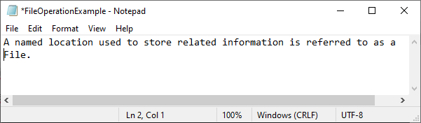 // 將內(nèi)容寫入 FileOperationExample.txt 文件