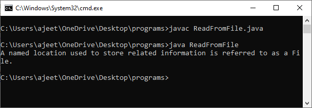 在上面的代碼中,我們導(dǎo)入了“java.util.Scannner”、“java.io.File”和“java.io.IOException”類。我們創(chuàng)建了一個ReadFromFile類,在它的 main 方法中,我們使用了try-catch 塊。在 try 部分,我們創(chuàng)建了Scanner和File類的實例。我們將File類對象傳遞給Scanner類對象,然后使用“While”迭代掃描器類對象循環(huán)并打印文件的每一行。我們還需要關(guān)閉掃描器類對象,所以我們使用 close() 函數(shù)。如果我們在 try 部分遇到任何錯誤,它會跳轉(zhuǎn)到 catch 塊。在 catch 塊中,我們處理 IOException 并打印自定義消息。