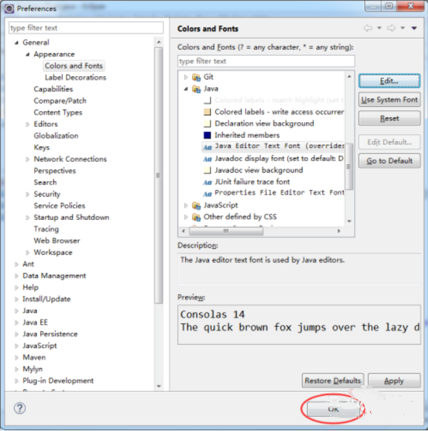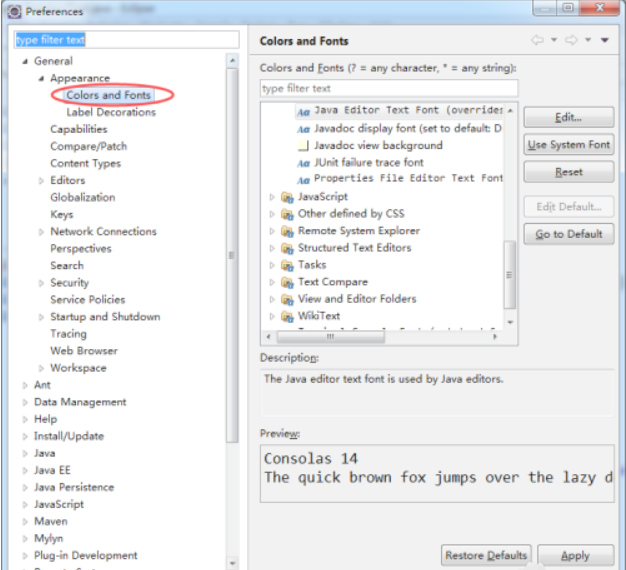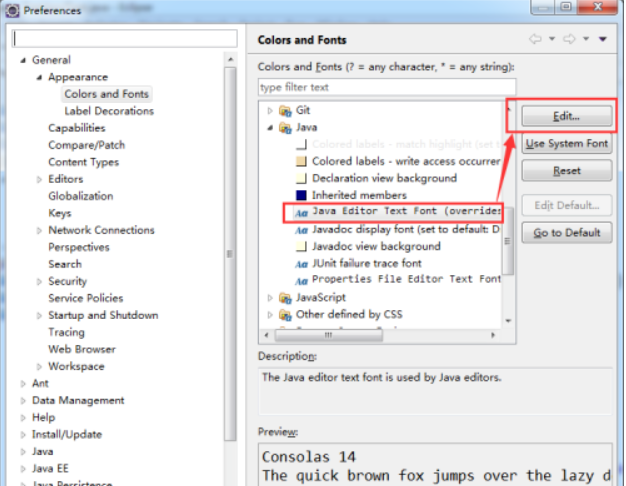 4.在右側(cè)找到【java】->【Java Editor Text Font】
