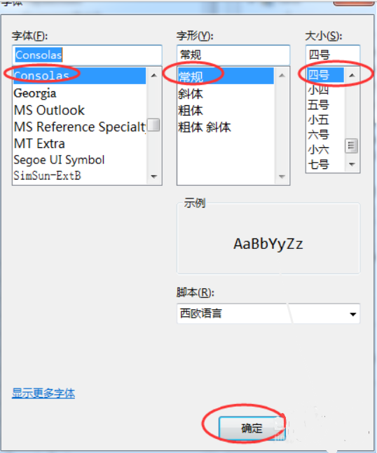 6.選擇您要設(shè)置的字體和大小,最后點(diǎn)擊確定按鈕