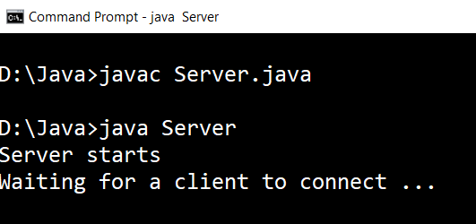 我們看到執(zhí)行后,服務(wù)器等待客戶端連接。現(xiàn)在,執(zhí)行客戶端程序并觀察服務(wù)器如何響應(yīng)。