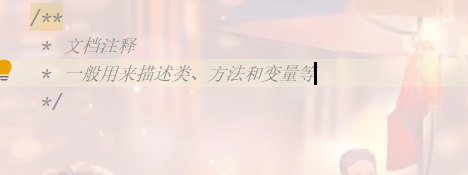 輸入/**并回車 可以快速打出文檔注釋
