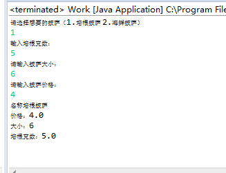 System.out.println("請輸入披薩價格:");