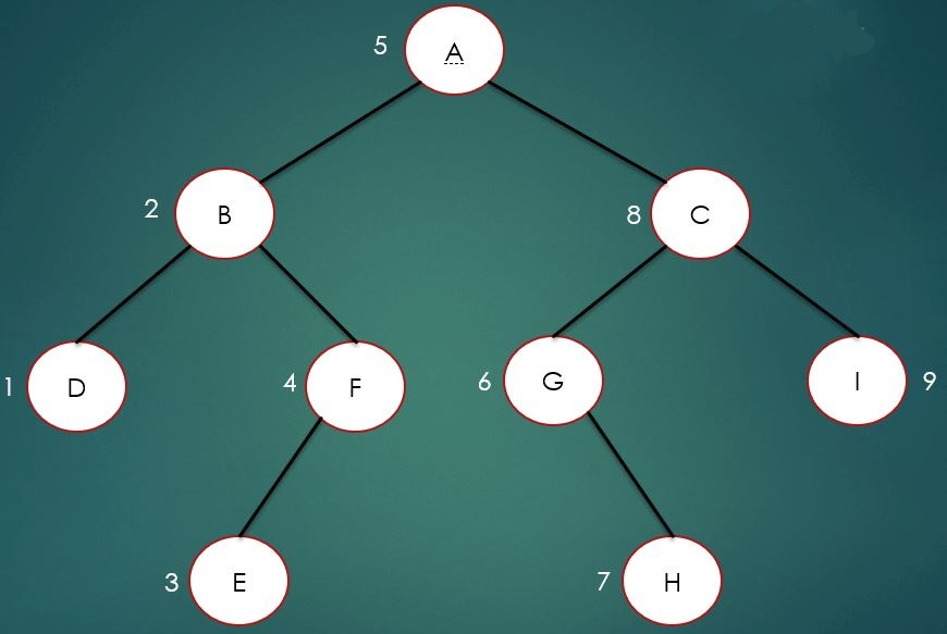 如上圖所示,中序遍歷結(jié)果為: