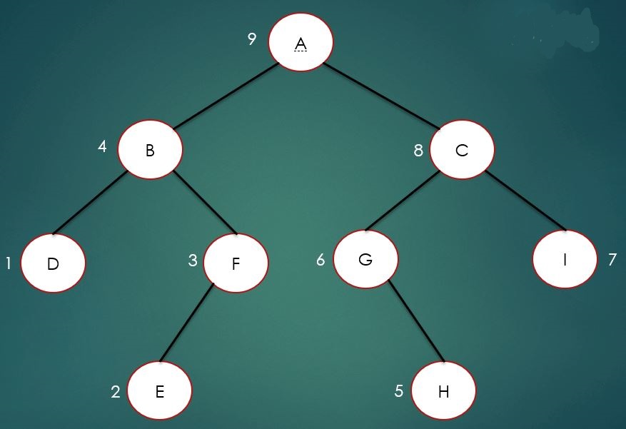 如上圖所示,后序遍歷結(jié)果為: