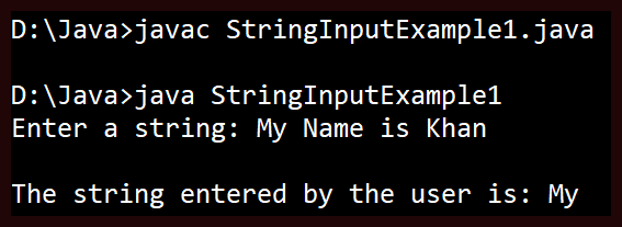 說明:用戶輸入 My Name is Khan。但是,在遇到“我的”這個詞之后是空白。因此,其余三個字沒有被讀取,同樣可以通過觀察輸出來確認。