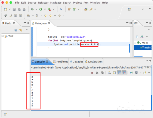 7.定義字符串ee="aabbccdd1122",遍歷中通過ee.charAt()獲得字符。