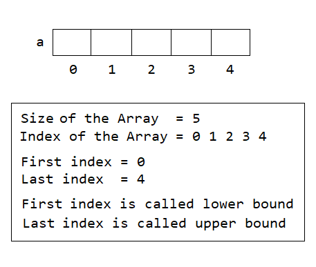 在上圖中,我們可以看到一維數(shù)組的名稱是 a,它可以存儲 5 個整數(shù)。數(shù)組的大小為 5。數(shù)組的索引為 0、1、2、3 和 4。