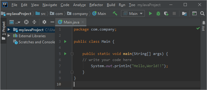 一旦項目成功執(zhí)行,您將在 IDE 的底部窗格中看到程序的輸出。在這種情況下,消息“Hello World!!” 將顯示為成功執(zhí)行 Java 應(yīng)用程序的結(jié)果。