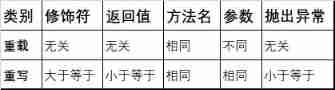 (1)方法重載在同一個(gè)類中,聲明多個(gè)同名方法,通過參數(shù)列表區(qū)分不同的方法,并且參數(shù)列表的個(gè)數(shù)、類型與順序有關(guān),與修飾符和返回?zé)o關(guān)值類型和拋出的異常類型