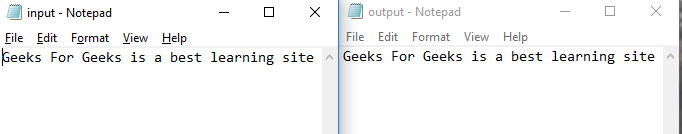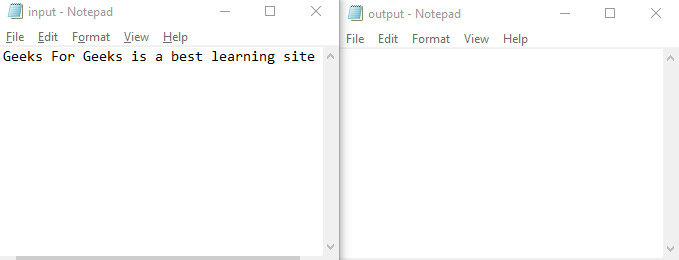 對于上述程序,我們需要一個(gè) input.txt 和一個(gè) output.txt 文件。最初,兩個(gè)文本文件看起來像這樣。