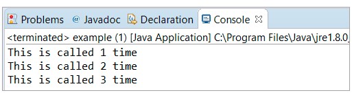 System.out.println("This is called " + i++ + " time");