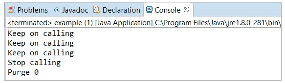如果您比較為 cancel() 和 purge() 方法給出的示例,您會注意到在下面的 purge() 方法示例中,在 cancel() 方法之后放置了一個 break 語句。這將允許控件在“i”變?yōu)?3 時立即退出循環(huán)。