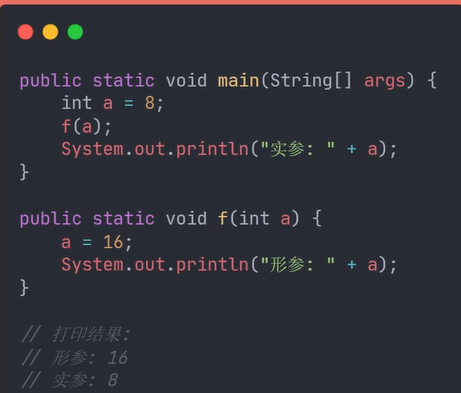 值傳遞:對形參的修改不會影響到實參 。