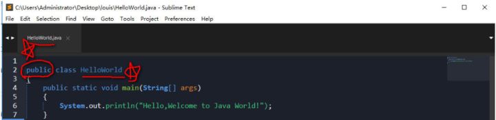 HelloWorld 類(lèi)是 public 修飾的,文件名 HelloWorld 與類(lèi)名 HelloWorld 相同;