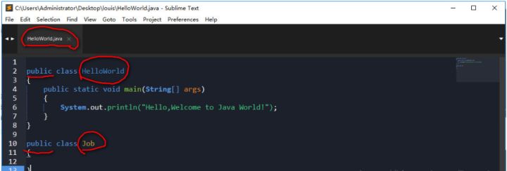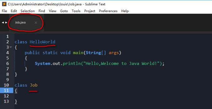 在 HelloWorld.java 源文件中定義一個(gè) HelloWorld 和 另外一個(gè)類(lèi) Job,文件名為 HelloWorld,