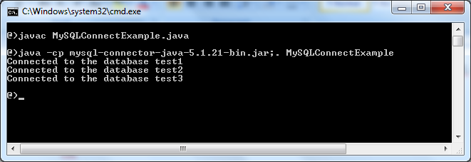 java -cp mysql-connector-java-5.1.21-bin.jar;。MySQLConnect 示例