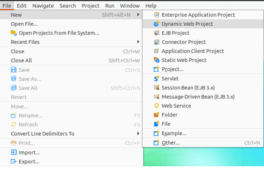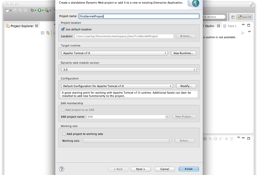 現(xiàn)在打開 Eclipse IDE,選擇 file > new > Dynamic Web Project。輸入項(xiàng)目名稱為 FirstServletProject,使用項(xiàng)目位置的默認(rèn)設(shè)置,然后單擊下一步,勾選生成 web.xml 部署描述符并單擊完成按鈕。