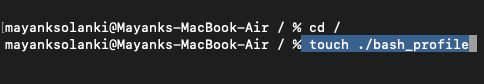確保轉(zhuǎn)到終端中的根文件夾并編寫命令'touch ./bash_profile'
