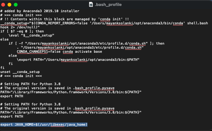 第 5 步:編輯創(chuàng)建的 .bash_profile,對于 java,您只需要編寫在下面的媒體中標(biāo)記的命令,如下所示: