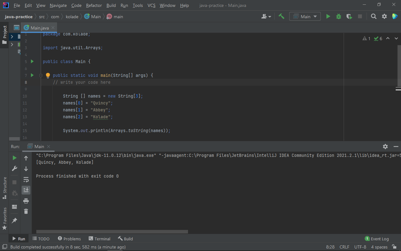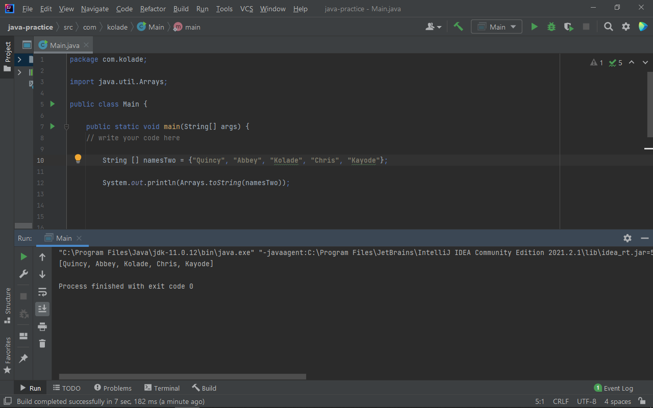 String [] namesTwo = {"Quincy", "Abbey", "Kolade", "Chris", "Kayode"};