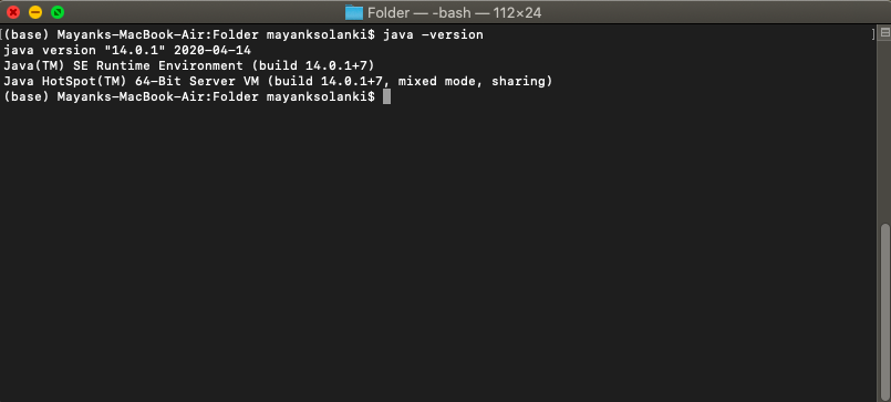 在 macOS 的情況下:它顯示 java 安裝在版本 14.0.1 的機器上(仔細查看第 2 行)