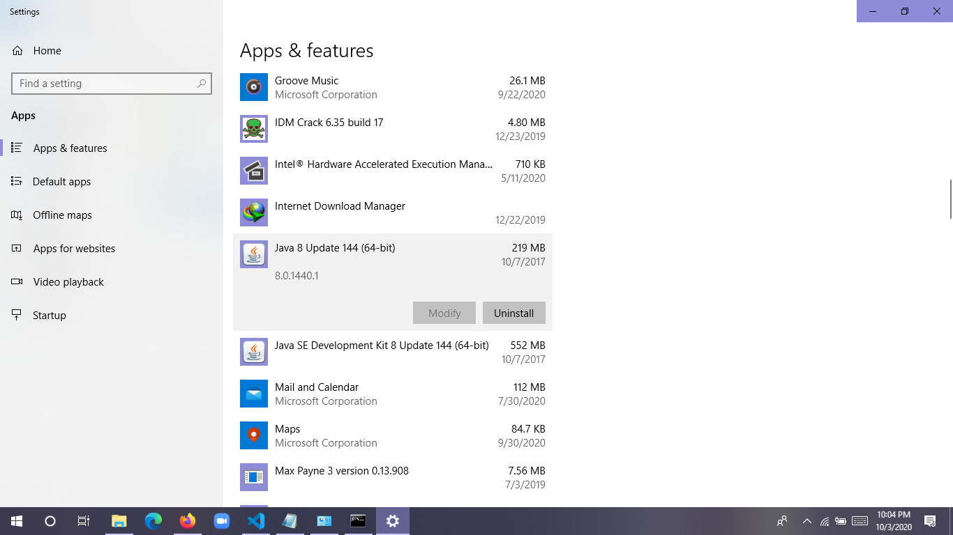 在控制面板中搜索程序和功能并搜索 JAVA Named 選項