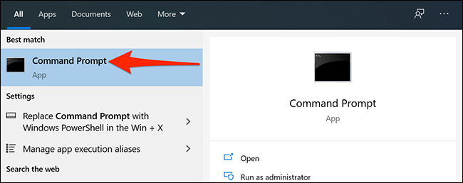 首先,打開(kāi)“開(kāi)始”菜單,搜索“命令提示符”,然后在搜索結(jié)果中單擊“命令提示符”快捷方式。
