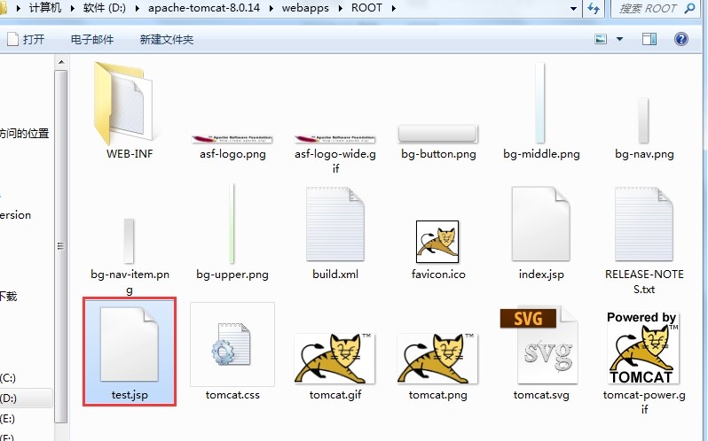 首先在D:\apache-tomcat-8.0.14\webapps\ROOT目錄中新建一個jsp文件: