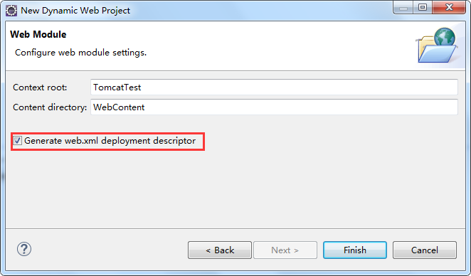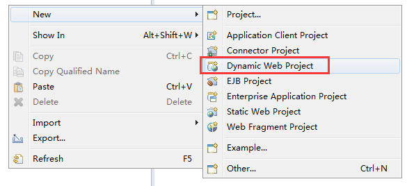 選擇 "File-->New-->Dynamic Web Project",創(chuàng)建 TomcatTest 項目: