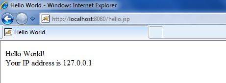 將以上代碼保存在hello.jsp中,然后將它放置在 C:\apache-tomcat-7.0.2\webapps\ROOT目錄下,打開(kāi)瀏覽器并在地址欄中輸入http://localhost:8080/hello.jsp。運(yùn)行后得到以下結(jié)果: