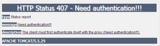 <% // 設置錯誤代碼,并說明原因 response.sendError(407, "Need authentication!!!" ); %>