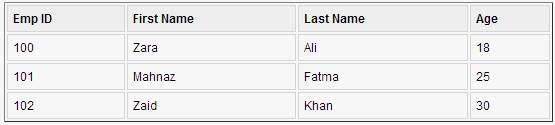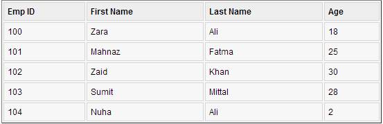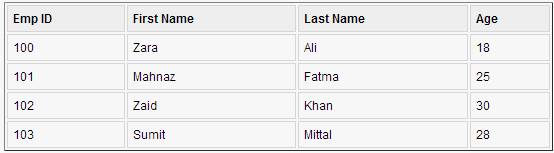 mysql> INSERT INTO Employees VALUES (100, 18, 'Zara', 'Ali');