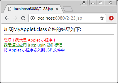 ① 創(chuàng)建 2-23.jsp 頁面,使用<jsp:plugin>動作標(biāo)記加載: