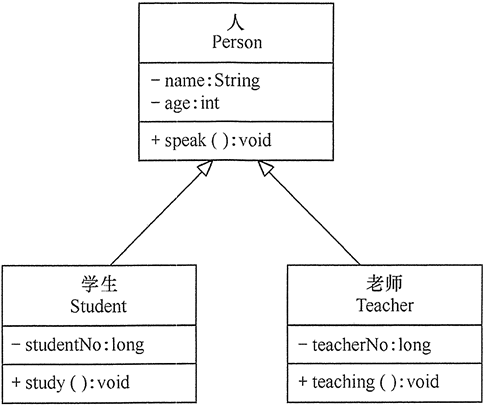 在 UML 類圖中,泛化關(guān)系用帶空心三角箭頭的實(shí)線來(lái)表示,箭頭從子類指向父類。在代碼實(shí)現(xiàn)時(shí),使用面向?qū)ο蟮睦^承機(jī)制來(lái)實(shí)現(xiàn)泛化關(guān)系。例如,Student 類和 Teacher 類都是 Person 類的子類,其類圖如圖 8 所示。