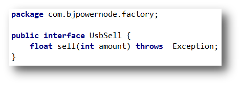 定義業(yè)務(wù)接口UsbSell(目標(biāo)接口),其中含有抽象方法sell(int amount), sell是目標(biāo)方法。