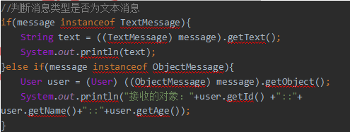 3.修改QueueReceiver類中,添加對對象消息接收處理的代碼