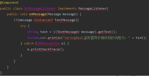 System.out.println("SpringBoot異步接收到的消息為:" + text);