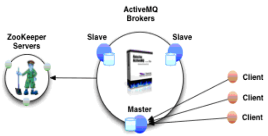 這種集群方式是ActiveMQ5.9版本以后新增的特性,它使用ZooKeeper從一組broker中協(xié)調(diào)選擇一個(gè)broker作為master主,其他broker作為slave從的模式。所有slave從節(jié)點(diǎn)通過(guò)復(fù)制master主節(jié)點(diǎn)的消息來(lái)實(shí)現(xiàn)消息同步,當(dāng)主出現(xiàn)故障后,沒有被消費(fèi)的消息在從服務(wù)器上也同步了一份,所以不會(huì)有消息的丟失。