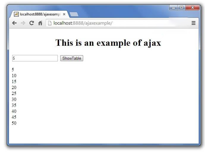 在此頁面中,我們創(chuàng)建了一個從用戶獲取輸入的表單。當用戶單擊showTable按鈕時,將調(diào)用sendInfo()函數(shù)。在這個函數(shù)中編寫了所有的ajax代碼。