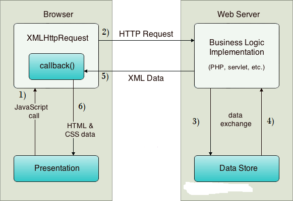 • 用戶從UI發(fā)送請求,javascript調(diào)用轉(zhuǎn)到XMLHttpRequest對象。